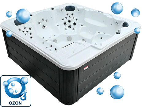 - Jakość wody: dzięki zastosowaniu ozonatora oraz odpowiedniej chemii (chlor lub brom), woda zachowuje czystość nawet do 120 dni.