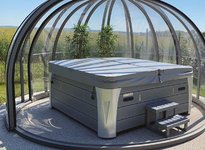 Jacuzzi wyposażone jest w automatyczny system zabezpieczający przed zamarzaniem, niskim poziomem wody i przepięciem, a także dwa głośniki Bluetooth.