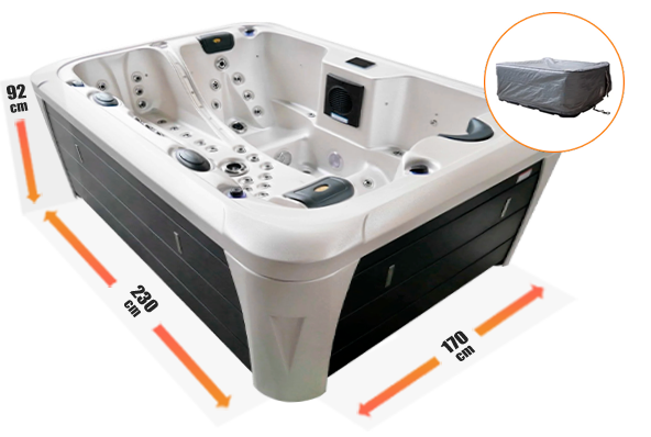 Jacuzzi wyposażono w automatyczne systemy ochrony przed zamarzaniem, niedoborem wody oraz przepięciami.