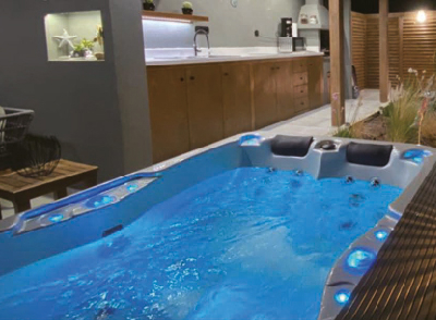 Ciesz się luksusowym basenem z hydromasażem Aquajoy Riviera, zaprojektowanym z myślą o maksymalnym komforcie i zdrowiu.