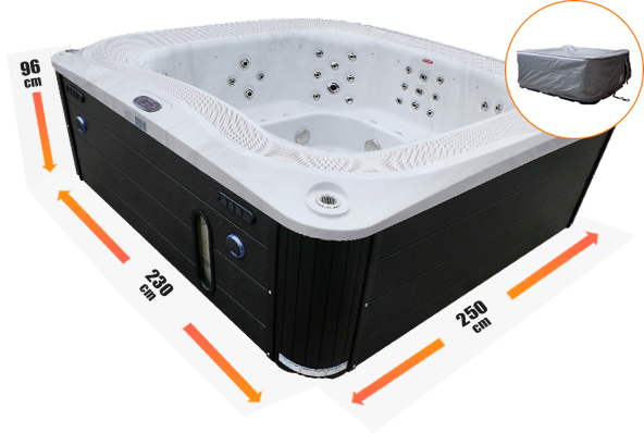 Ciesz się luksusowym basenem z hydromasażem Aquajoy Serenity, zaprojektowanym z myślą o maksymalnym komforcie i zdrowiu.
