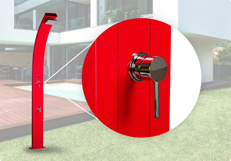 Dzięki minimalistycznemu designowi i kompaktowym wymiarom prysznic z łatwością wpasuje się w nienaganny krajobraz Twojej działki.