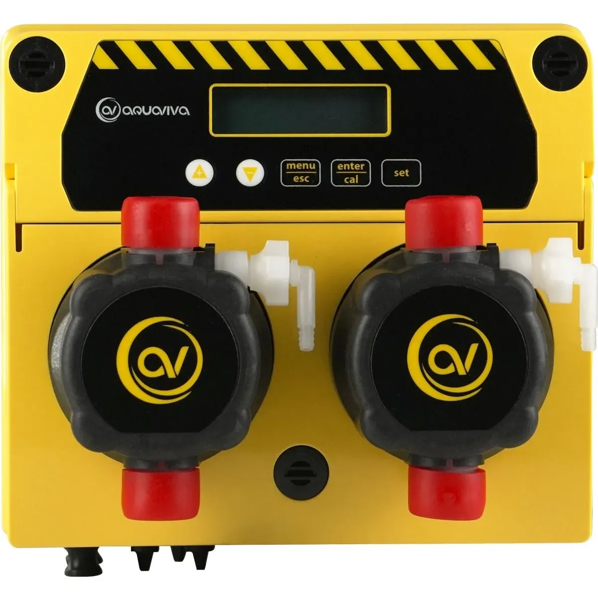System cyfrowych membranowych pomp dozujących Aquaviva pH/Rx+Free Cl 5 l/h to doskonała opcja do precyzyjnego dozowania chemii w basenie bez interwencji człowieka. System samodzielnie kontroluje i reguluje poziom pH, potencjał Redox oraz stężenie wolnego chloru w basenach o pojemności do 500 000 litrów. Proporcjonalny tryb dozowania wykonywany jest automatycznie w oparciu o wskaźniki czujników рН, Rx i celki Free Cl. Manualne ustawienie wydajności umożliwia dozowanie dowolnych odczynników ze stałą szybkością według procentu maksymalnej wydajności. Dostępność Wi-Fi w tym modelu sprawia, że sterowanie jest wygodniejsze.